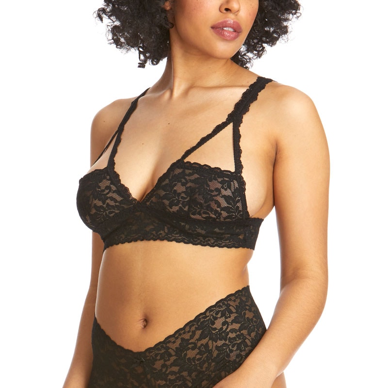 シグニチャー レース パッド クロスオーバー ブラジャー (ブラック)