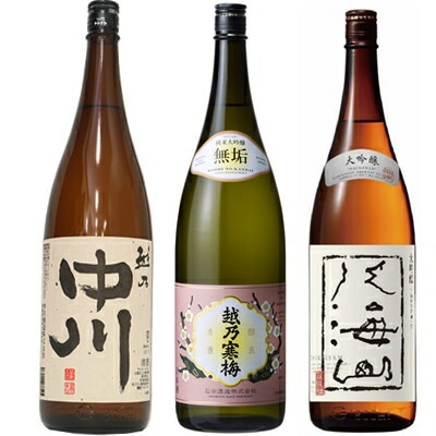 越乃中川 1800mlと越乃寒梅 無垢 純米大吟醸 1800ml と 八海山 大吟醸 1800ml 日本酒 3