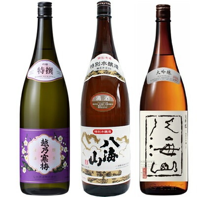 越乃寒梅 特撰 吟醸 1800mlと八海山 特別本醸造 1800ml と 八海山 大吟醸 1800ml 日本酒 3