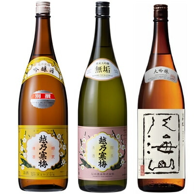 越乃寒梅 灑 純米吟醸 1800mlと越乃寒梅 無垢 純米大吟醸 1800ml と 八海山 大吟醸 1800ml 日本酒 3本セッ...