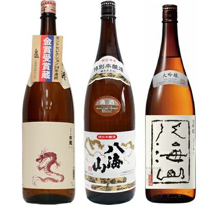 白龍 新潟純米吟醸 龍ラベル 1800mlと八海山 特別本醸造 1800ml と 八海山 大吟醸 1800ml 日本酒 3本セット