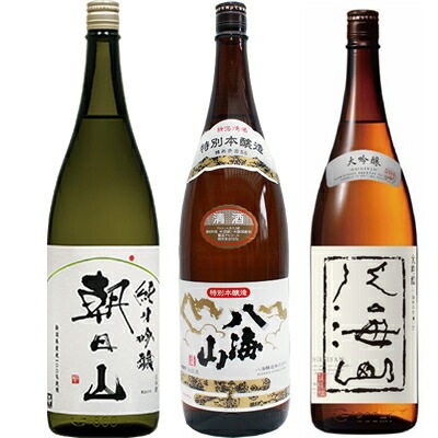 朝日山 純米酒 1800mlと八海山 特別本醸造 1800ml と 八海山 大吟醸 1800ml 日本酒 3本セット