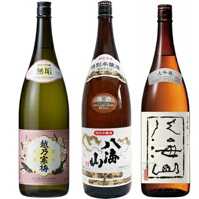 妙高 旨口四段仕込 本醸造 1800mlと越乃寒梅 無垢 純米大吟醸 1800ml と 八海山 大吟醸 1800ml 日本酒 3本...