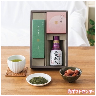 一番茶入り狭山茶・紀州南高梅・特選丸大豆醤油詰合せ SR3B-3