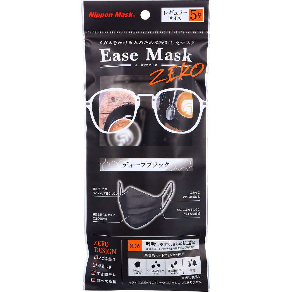 【不織布マスク】イーズマスク ゼロ レギュラーサイズ ディープブラック 5枚入