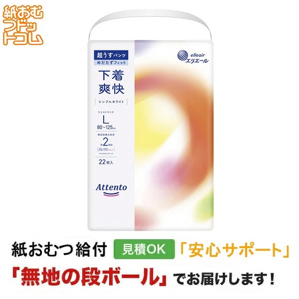 アテント うす型パンツ下着爽快シンプルホワイトL22枚 大人用紙おむつ 大人用オムツ