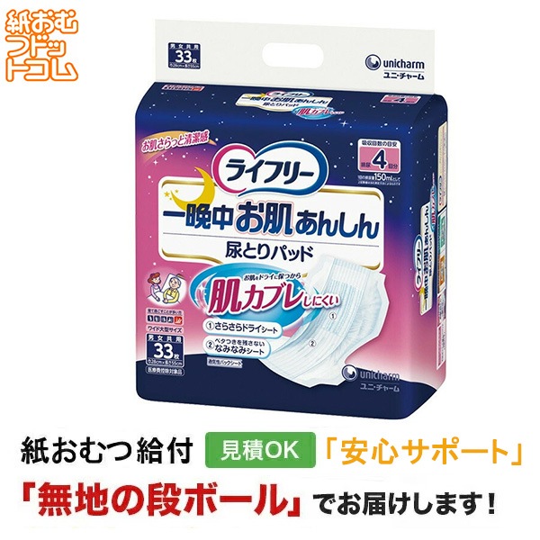 ライフリー 一晩中お肌あんしん尿とりパッド4回 33枚入 大人用紙おむつ 尿とりパッド