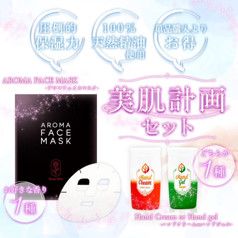 保湿×アロマの香りで美肌を作る 美肌計画 セット(フェイスマスク×ハンドクリームorハンドジェル)