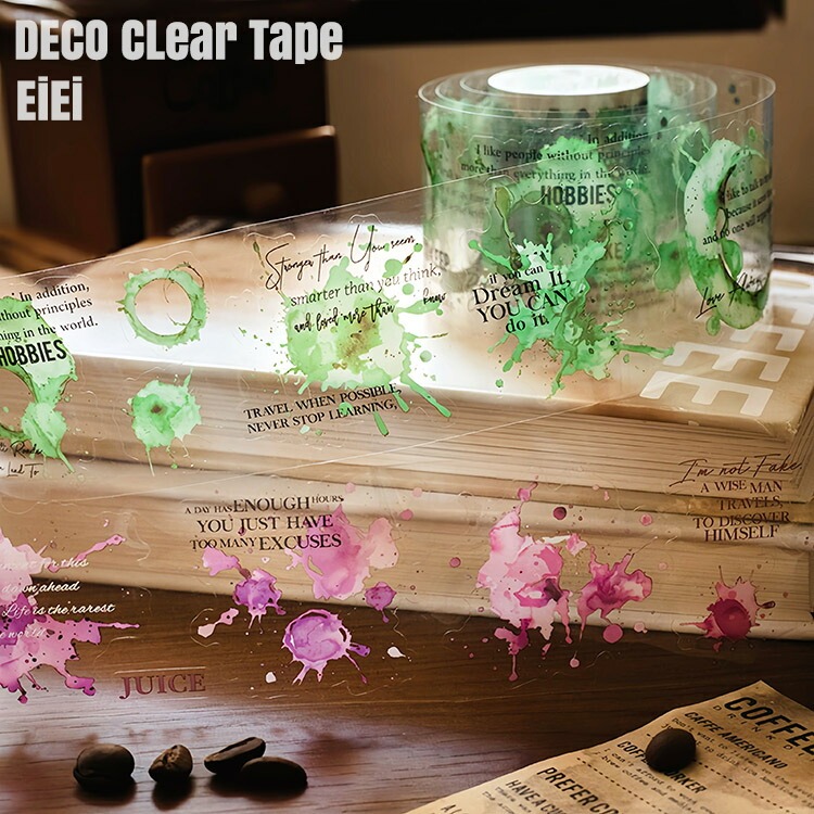 ダイカット クリアテープ しずく 水の粒 水滴 コーヒー 水彩 泡 あわ 水玉 ドット 英語 ぼかし 染め 暈染 PET 幅広50...