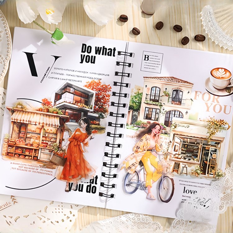 即日出荷 型抜き シールブック 耐水 人物 全身 大人 外国 女性 女の子 女子 家具 珈琲 ショップ コーヒー ケーキ 食パン ...