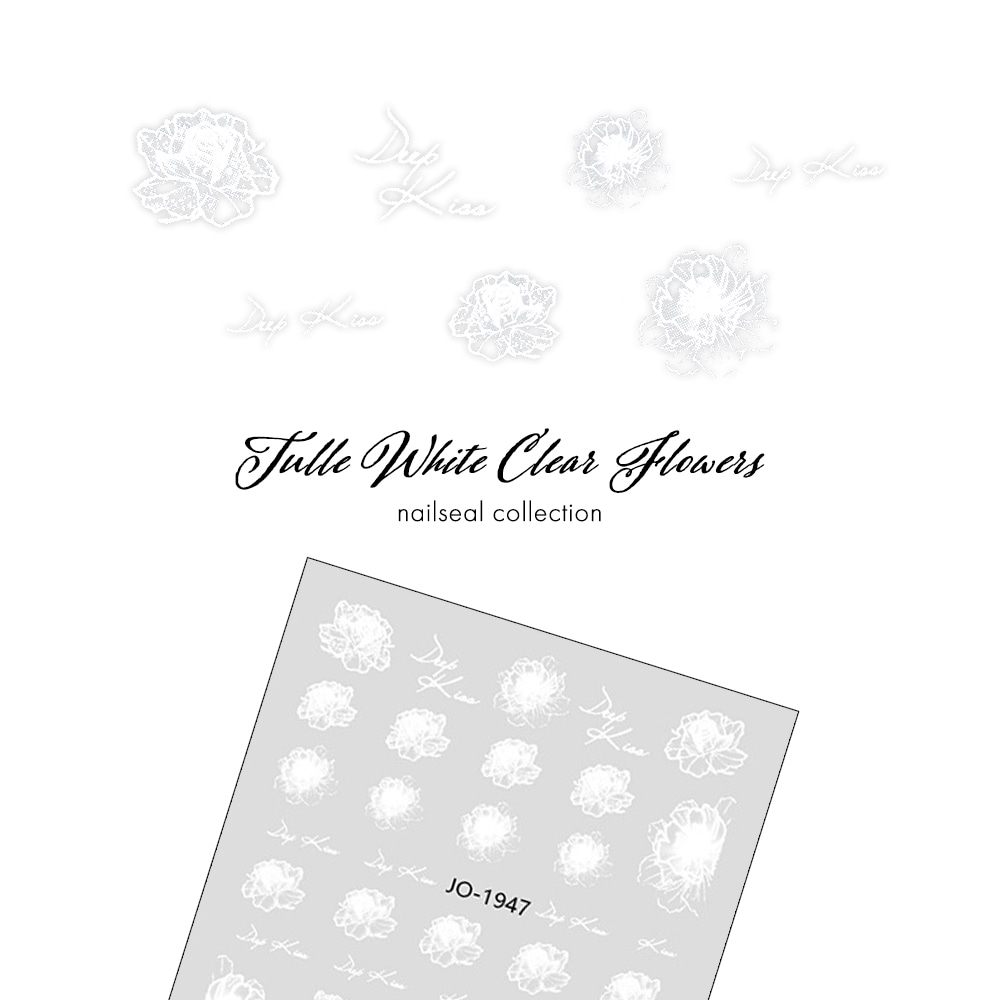 【ネコポス送料無料】ネイルシール チュールホワイトクリアフラワーシール