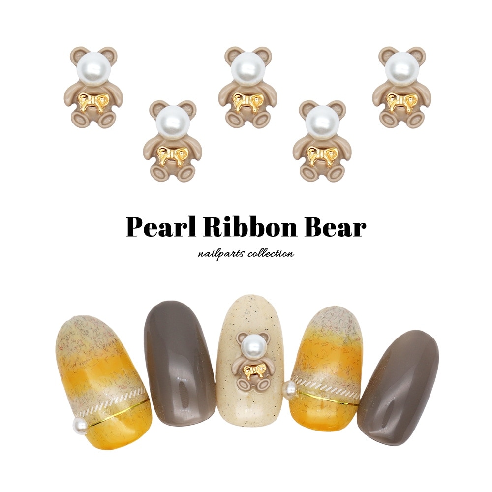 【ネコポス送料無料】ネイルパーツ パールリボンベアパーツ ゴールド 2個入り