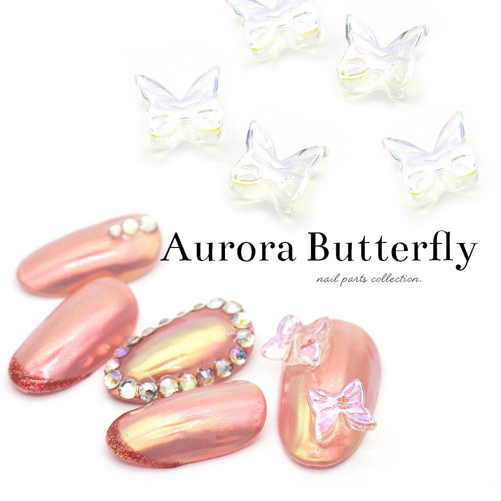 【ネコポス送料無料】ネイルパーツ オーロラバタフライ [4個入り]