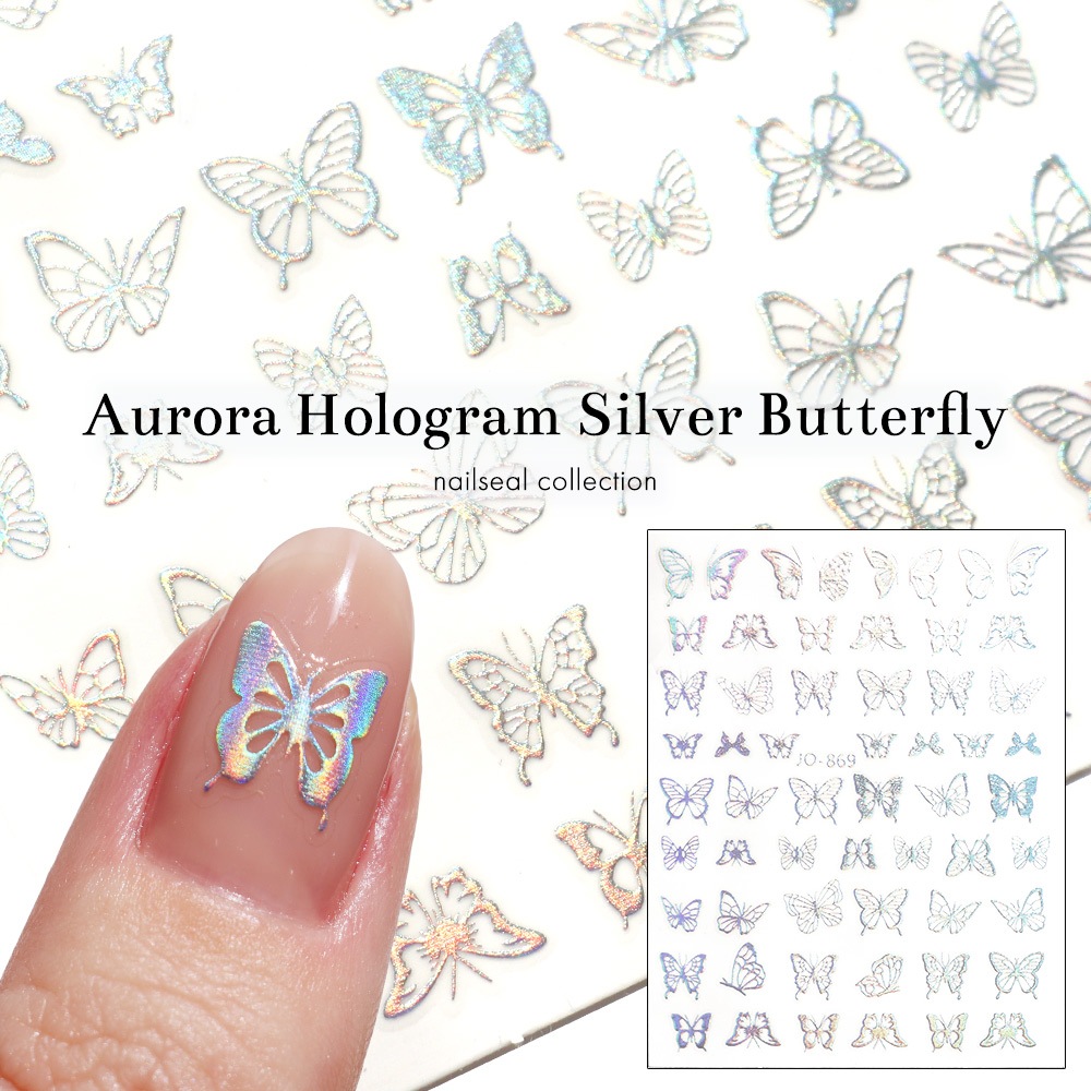 【ネコポス送料無料】ネイルシール オーロラホロ加工シルバーバタフライシール