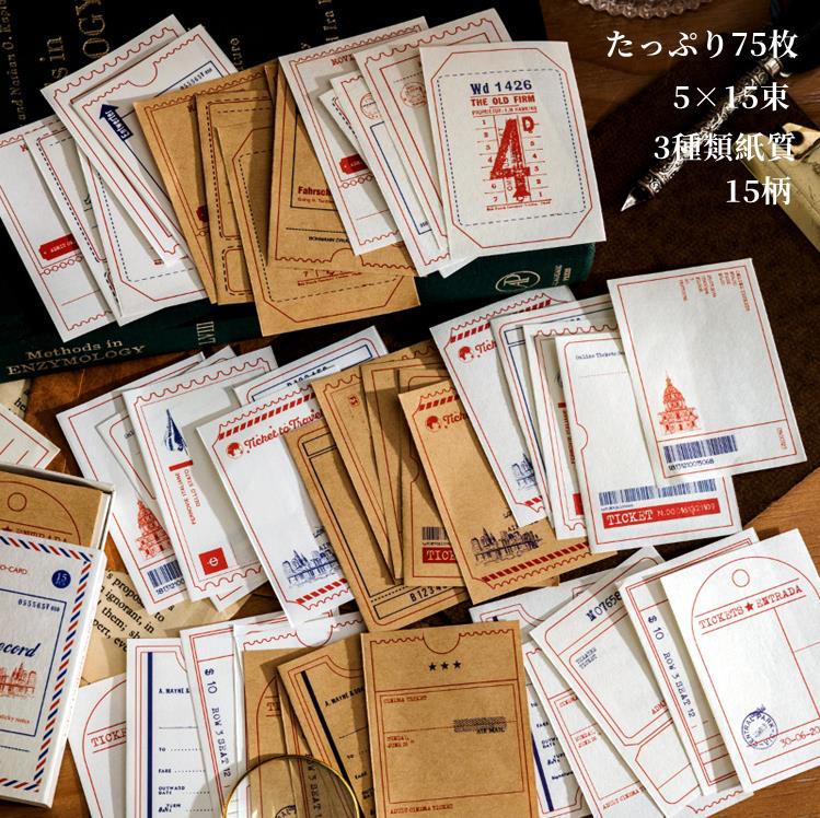 即日出荷 海外 メモパッド 便箋 異素材 異なる3種類紙質入り 箱入り 15束 75枚 コラージュ素材 ジャンクジャーナル デコレ...