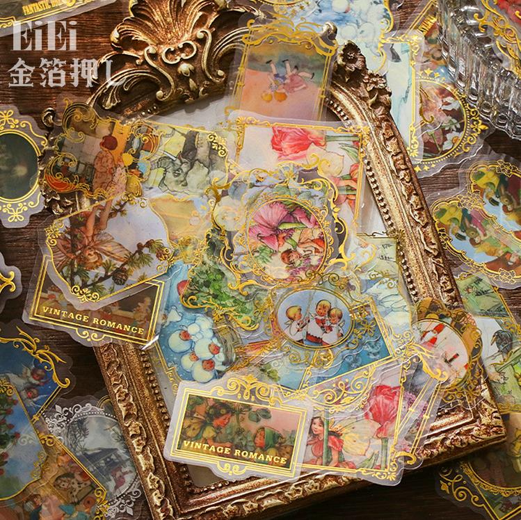 海外シール 金箔押し 飾り枠 森の妖精 童話 人物 フレークシール コラージュ 素材 ジャンクジャーナル 手帳 デコ 素材 耐...
