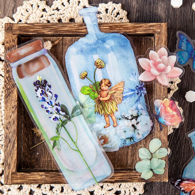 即日出荷 妖精 瓶 ボトル 海外シール 大きいめ フレークシール コラージュ素材 硝子 ボトル 花 蝶 フラワー シール クリア ...
