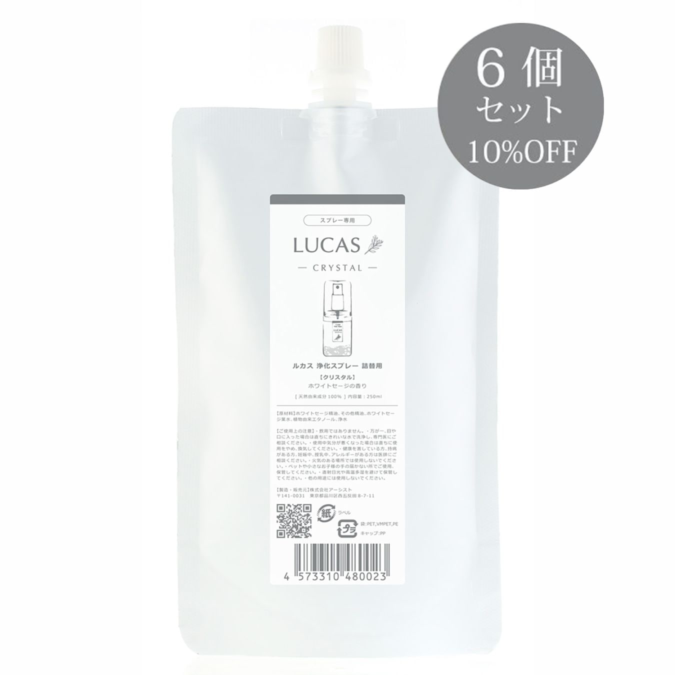 ルカス 浄化スプレー用詰替リフィル 250ml 【6個セット】(天然由来成分100%)