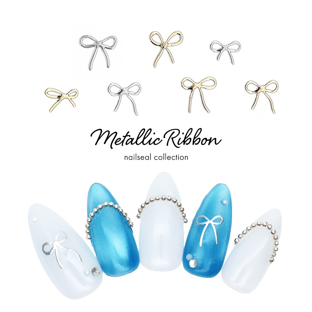 【ネコポス送料無料】ネイルシール 手描き風メタリックリボンシール [ゴールド 金/シルバー 銀] 全2色[M-280/M-281]