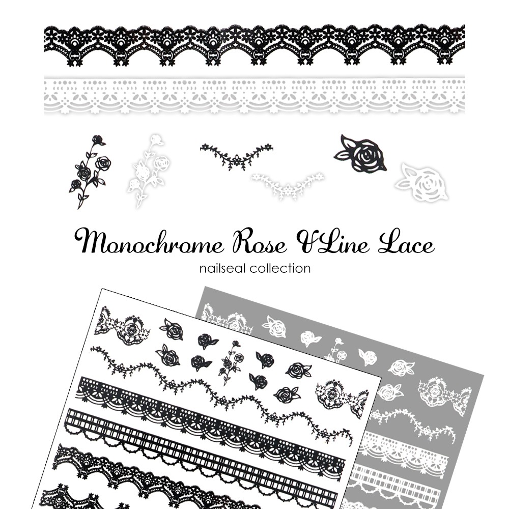 【ネコポス送料無料】ネイルシール モノクロローズ&ラインレースシール [ホワイト 白/ブラック 黒] 全2色