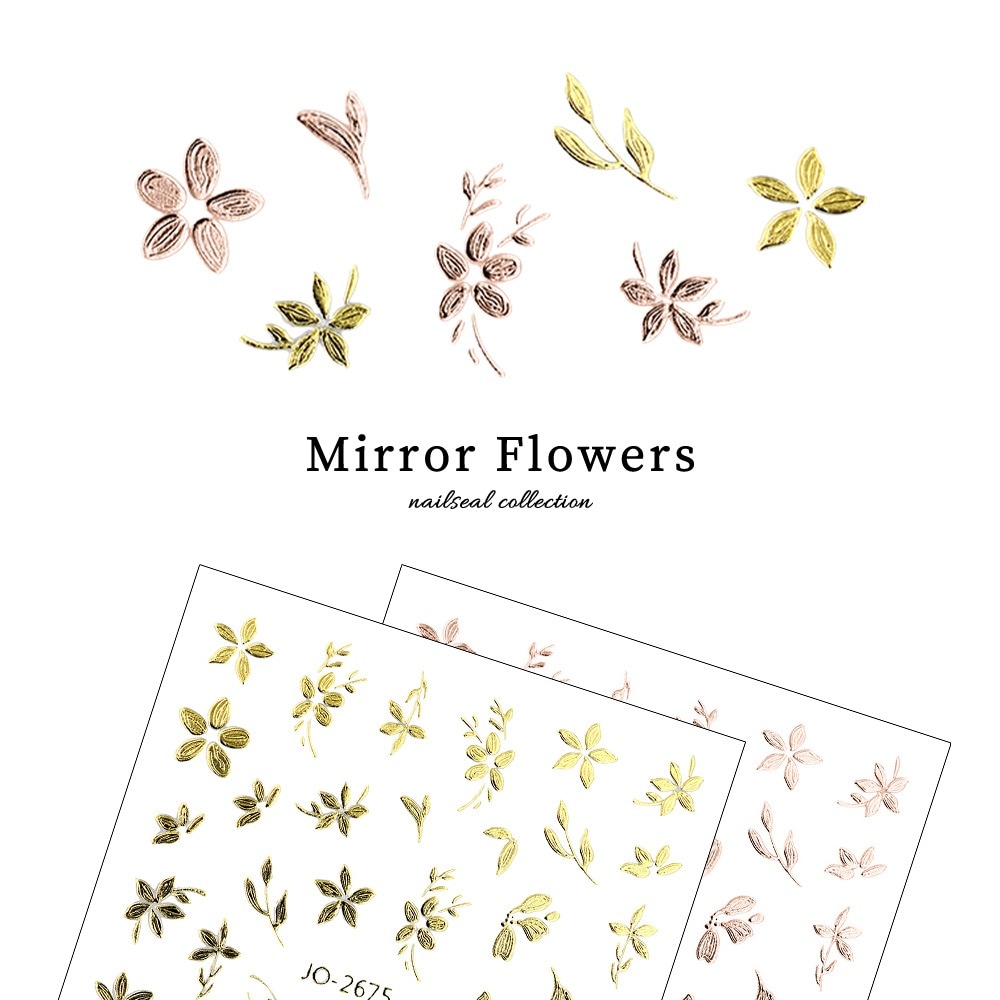 【ネコポス送料無料】ネイルシール 手描き風ミラーフラワーシール [ゴールド 金/ピンクゴールド] 全2色