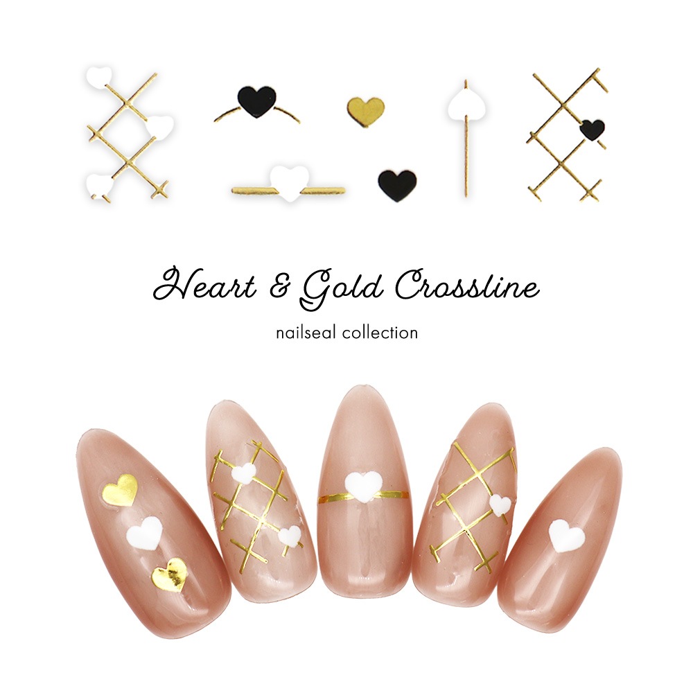 【ネコポス送料無料】ネイルシール ハート&ゴールドクロスラインシール [ホワイト 白/ブラック 黒] 全2色