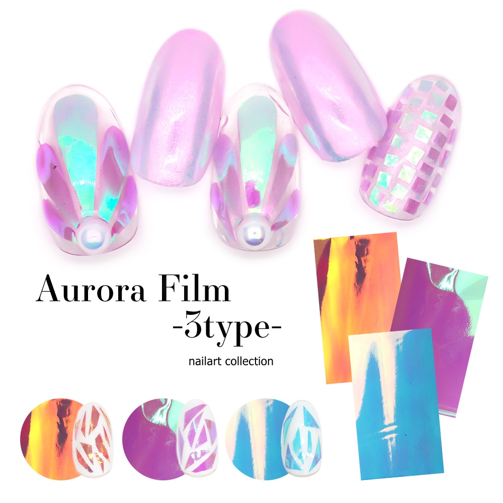 【ネコポス送料無料】ネイルアート ネイルホイル オーロラフィルム -3type- ネイル デコレーション うるうるネイル