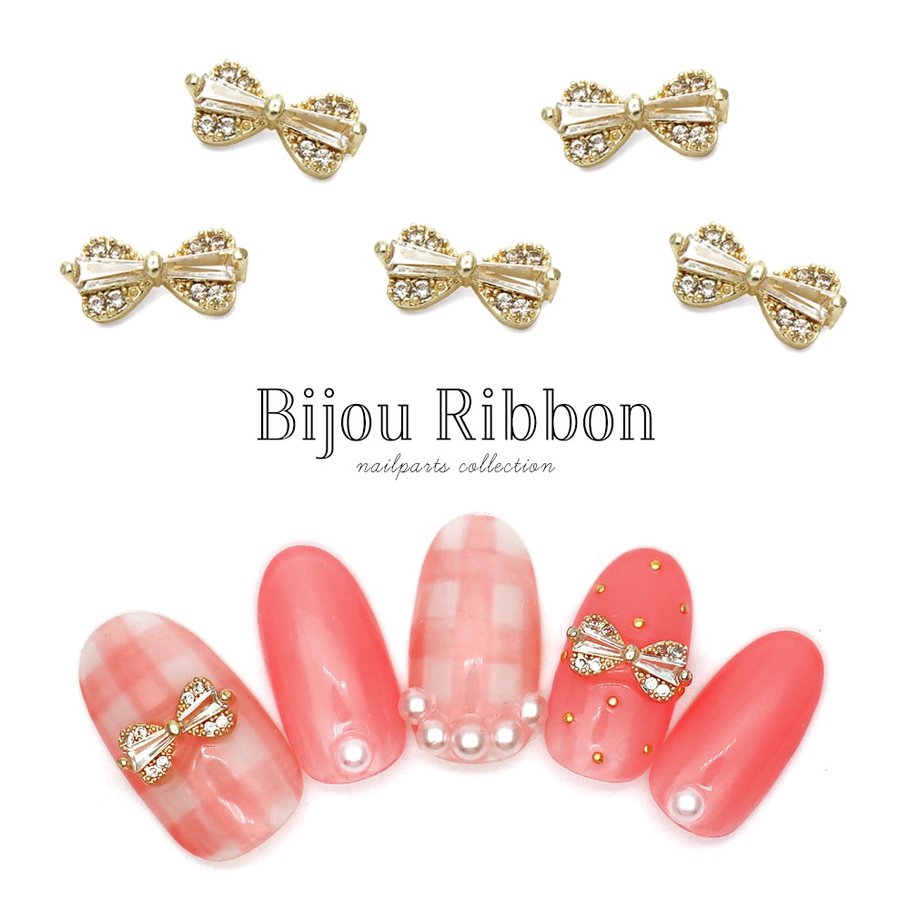 【ネコポス送料無料】ネイルパーツ ジルコニア製 ビジューリボンパーツ 2個入