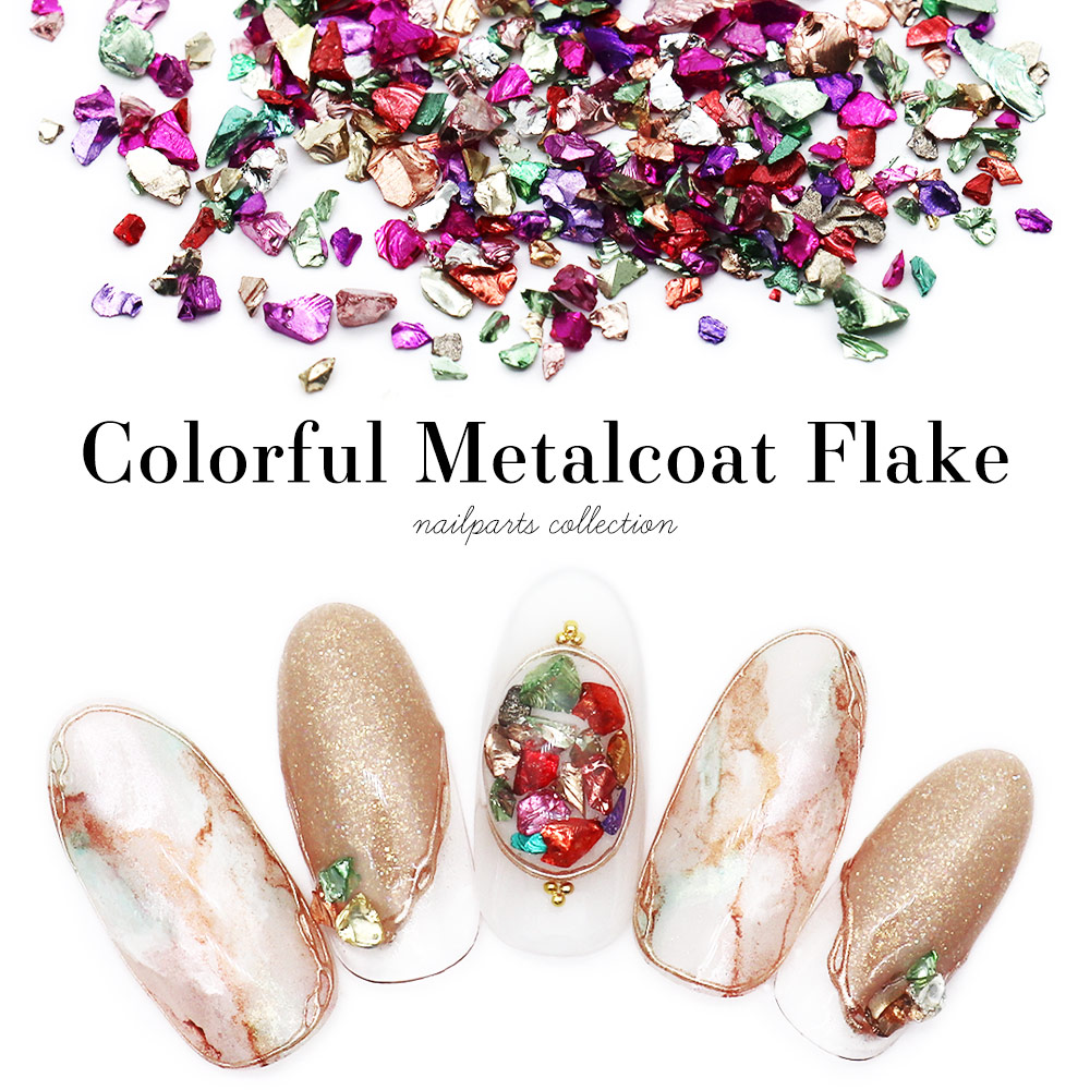 【ネコポス送料無料】ネイルパーツ カラフルメタルコートフレーク 約2g入り