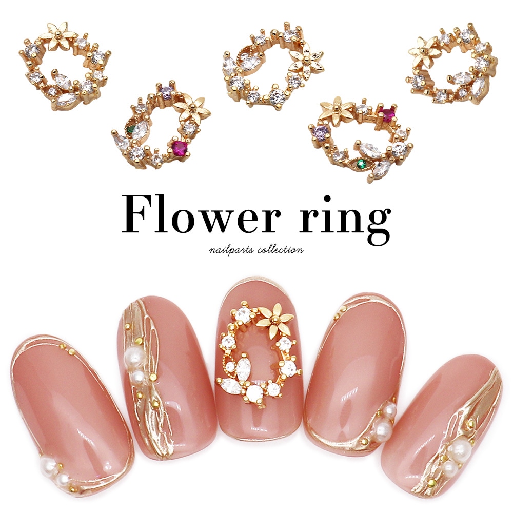 【ネコポス送料無料】ネイルパーツ ジルコニア製 フラワーリングパーツ [2個入り]