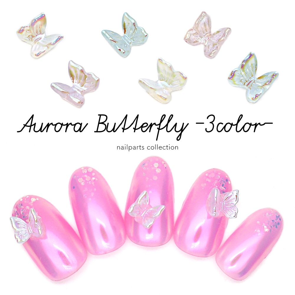 【ネコポス送料無料】ネイルパーツ オーロラバタフライ-3colors- 全3色 [5個入り]