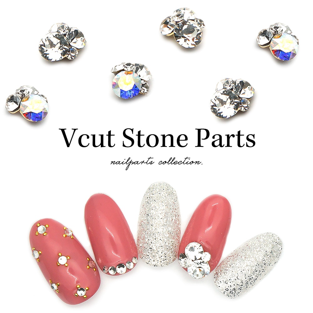 【ネコポス送料無料】ネイルパーツ Vカットストーンパーツ 2個入り クリスタル/オーロラ