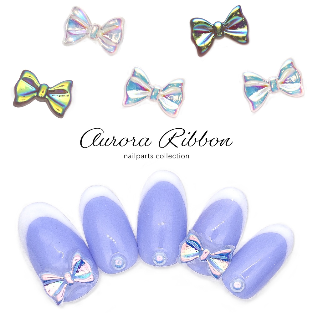 【ネコポス送料無料】ネイルパーツ オーロラリボンパーツ 全2色 [4個入り]