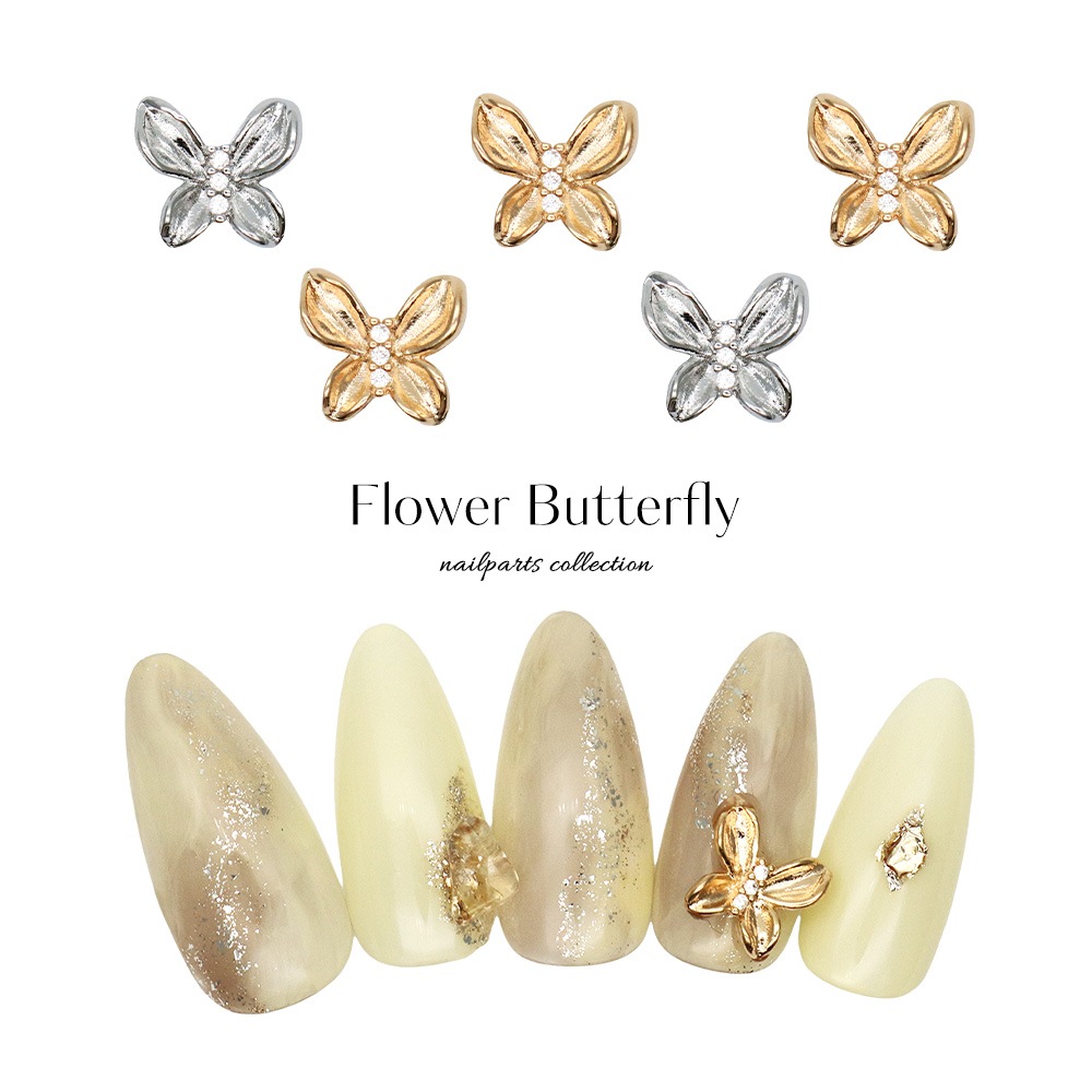 【ネコポス送料無料】ネイルパーツ ジルコニア製 フラワーバタフライパーツ [ゴールド 金/シルバー 銀] 全2色 2個入り
