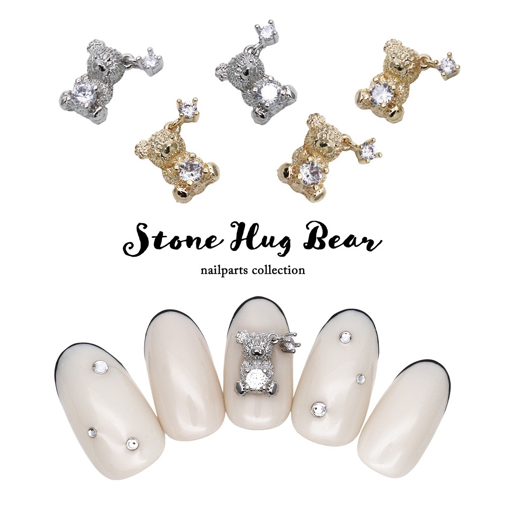 【ネコポス送料無料】ネイルパーツ ジルコニア製 ストーンハグベアパーツ [ゴールド/シルバー] 全2色 2個入り