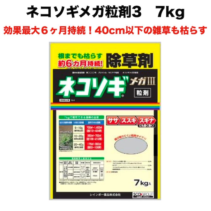 除草剤 強力 顆粒 ネコソギメガ粒剤3 7kg 1400m2まで 効果約6ヶ月持続 草丈40cmまで対応 土壌処理型 業務用にも ...