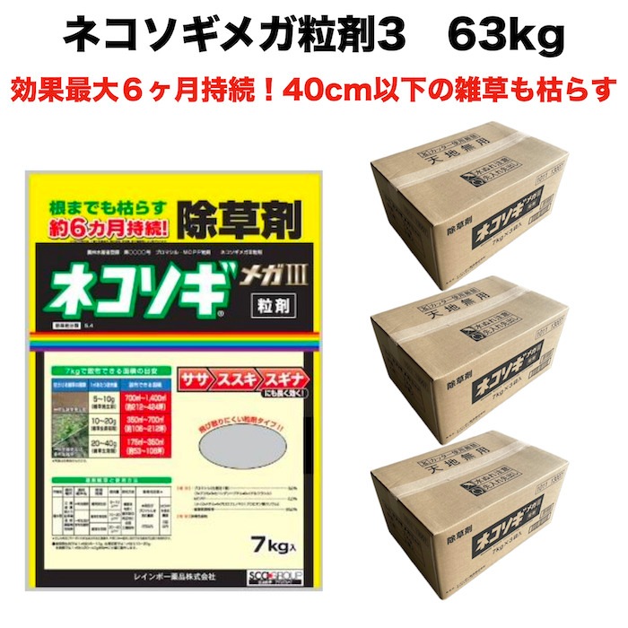 除草剤 強力 顆粒 ネコソギメガ 粒剤3 7kg×9袋 63kg 12600m2まで 効果約6ヶ月持続 草丈40cmまで対応 土壌...