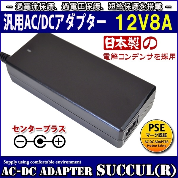 スイッチング式ACアダプター 12V 8A 日本製電解コンデンサ 最大出力電力96W 出力プラグ外径5.5mm(内径2.1mm)P...