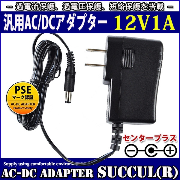 スイッチング式ACアダプター 12V 1A 最大出力12W 出力プラグ外径5.5mm(内径2.1mm) 起動時間6秒以上