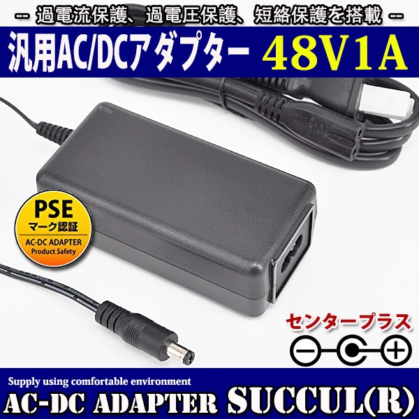 【1年保証付】汎用スイッチング式ACアダプター 48V/1A/最大出力48W 出力プラグ外径5.5mm(内径2.1mm)PSE取得...