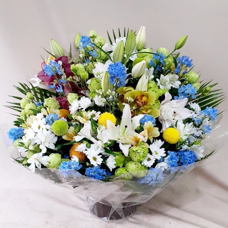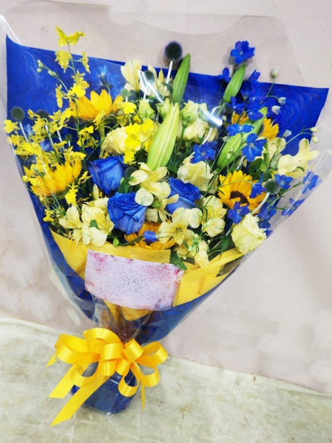 全国配送可能! ブルーイエロー系 花束 bqt-008
