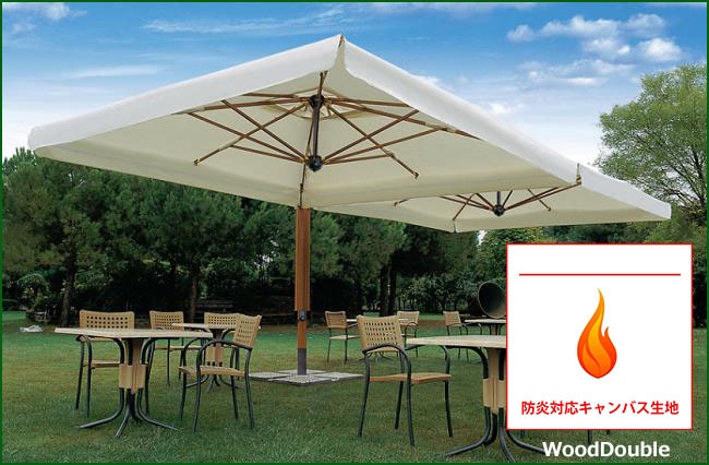 イタリア製高級パラソル/Wood Double【製品名:ウッドダブル/防炎対応商品】(日よけ、商業施設向けパラソル、スコラロジャパ...