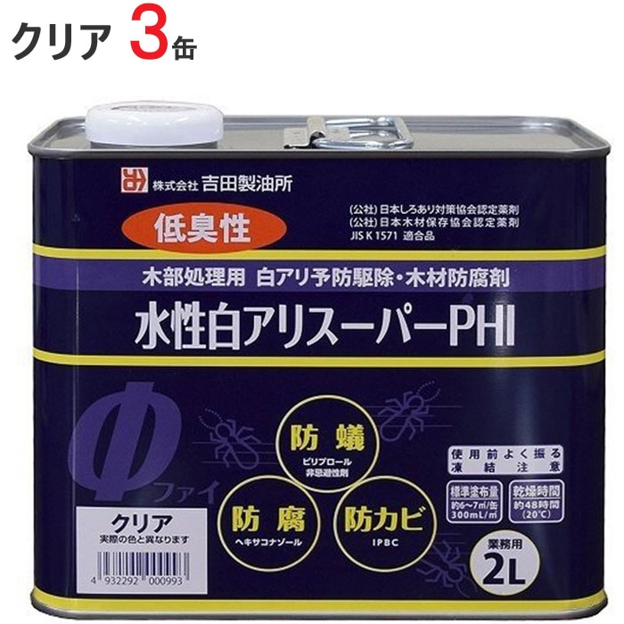 シロアリ駆除 白アリスーパー PHI 水性 クリア 2リットル 3缶1ケース単位 希釈済認定品 低臭性 低VOC 木部 木材 防腐...