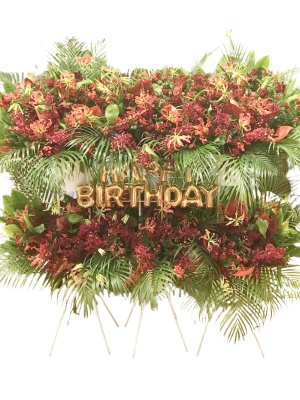 レッド系(色変更可能) happyBirthday文字バルーン付 3連結 スタンド花 2段 税込 91000円 1187st2-1...