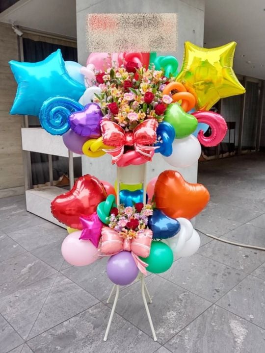 【地域限定】「想いが届く」スリムな形のバルーンスタンド花 2段 22000円