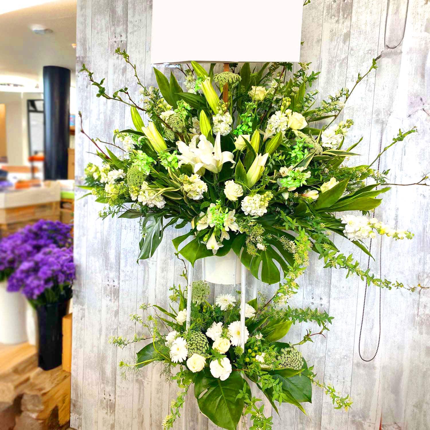 ホワイト系 圧巻のキングサイズ! スタンド花 2段 税込 100000円 1187st2-068