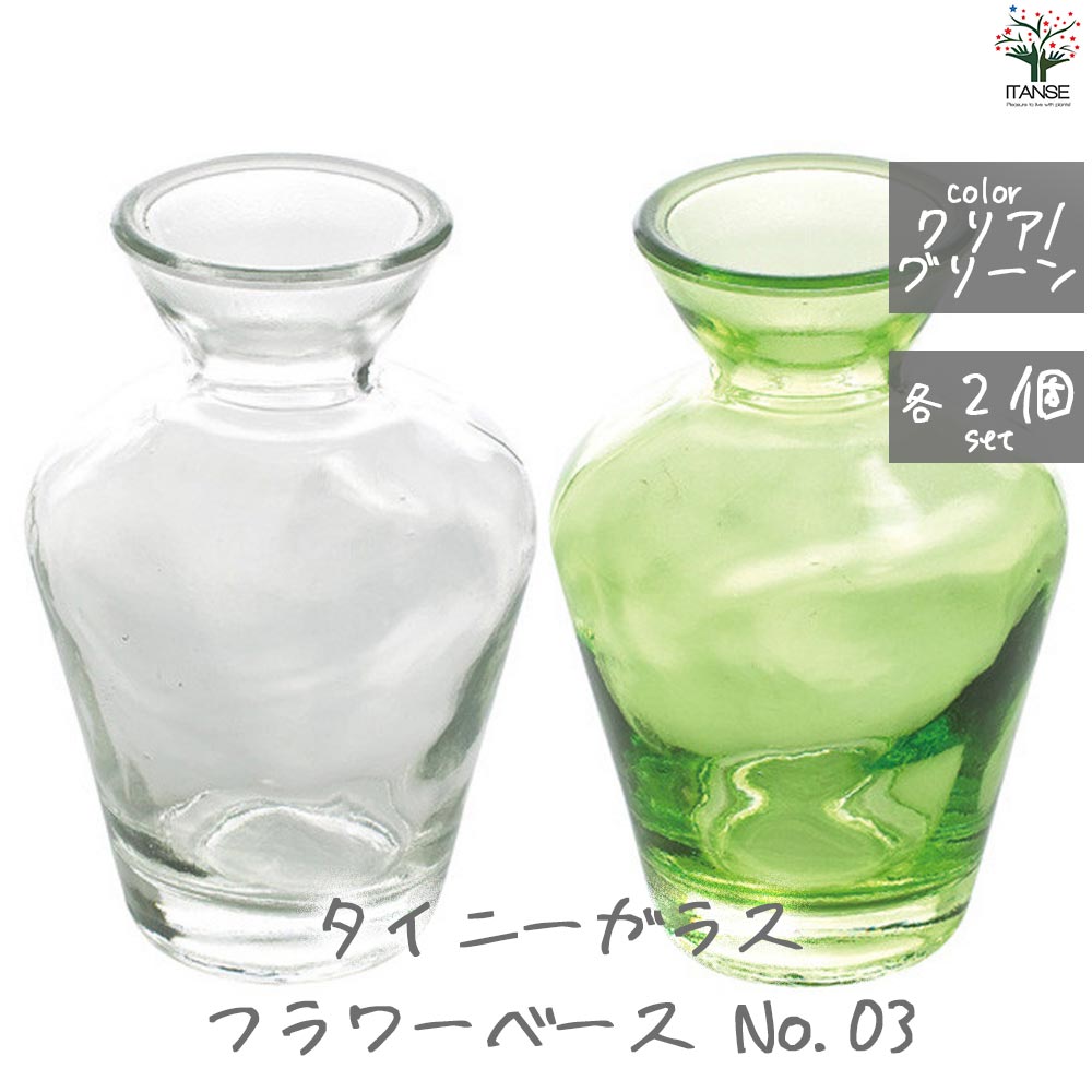 小さなガラス花瓶 タイニーフラワーベース Lサイズ(No.3) 色:クリア・グリーン各2個【資材/お買い得4個セット】