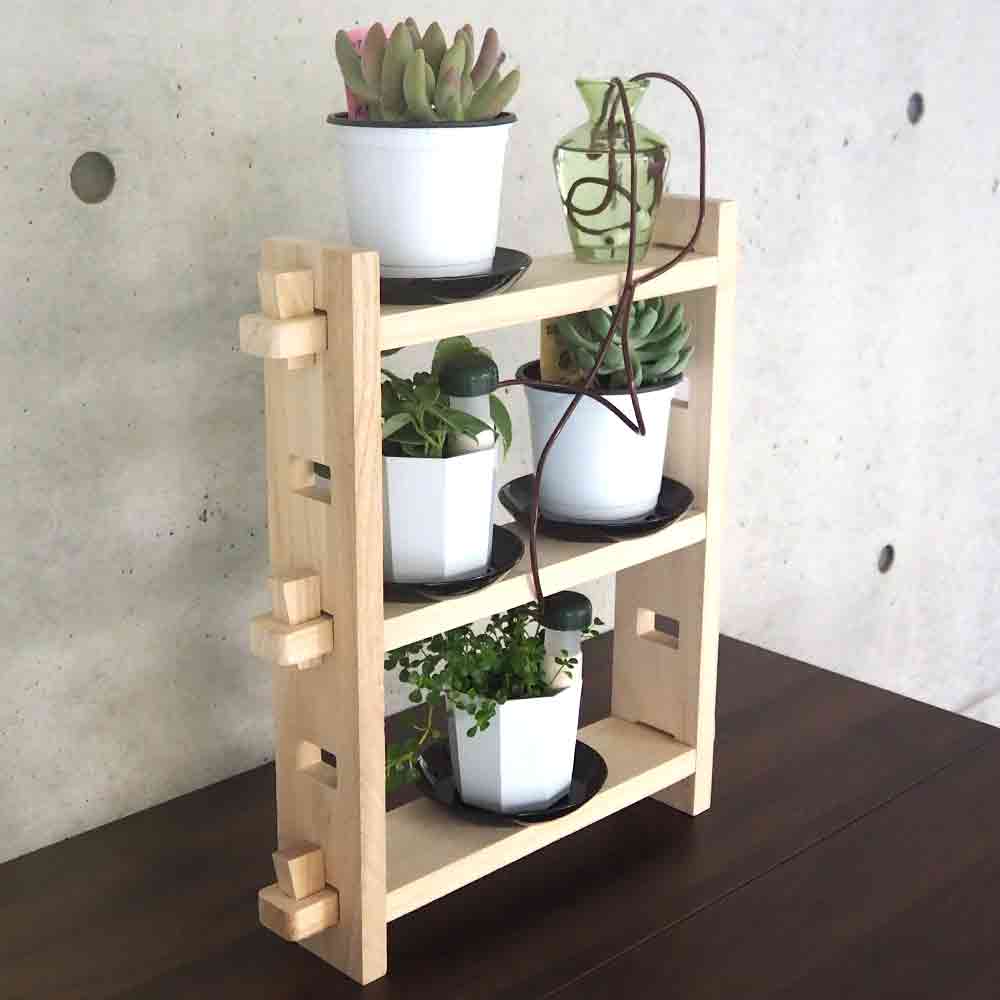 ミニ観葉植物+多肉植物ディスプレイ&生育棚 工具ほぼいらず!組み木差し込み白木ラック/LDセット【資材 /1個売り】