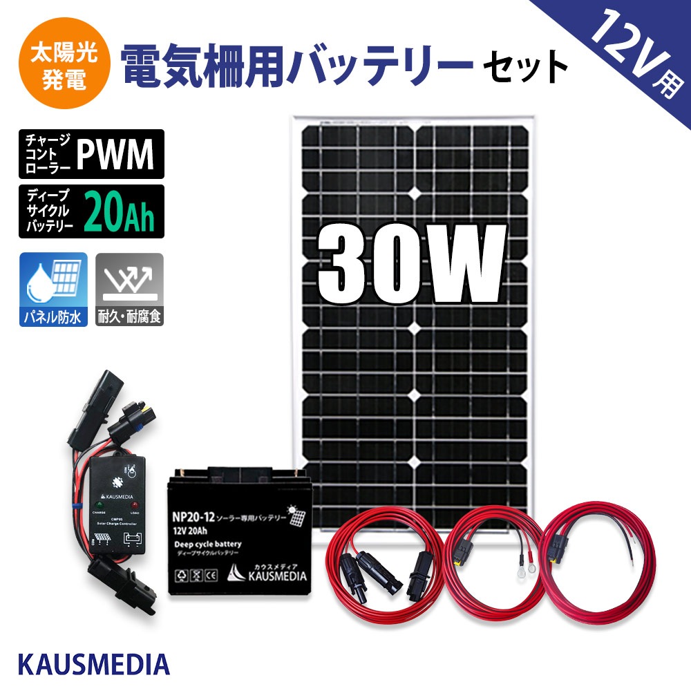 50W 電気柵 外部出力用 バッテリー化 ソーラー充電 20Ahバッテリー セット 田んぼ 畑 害獣対策 発電 蓄電