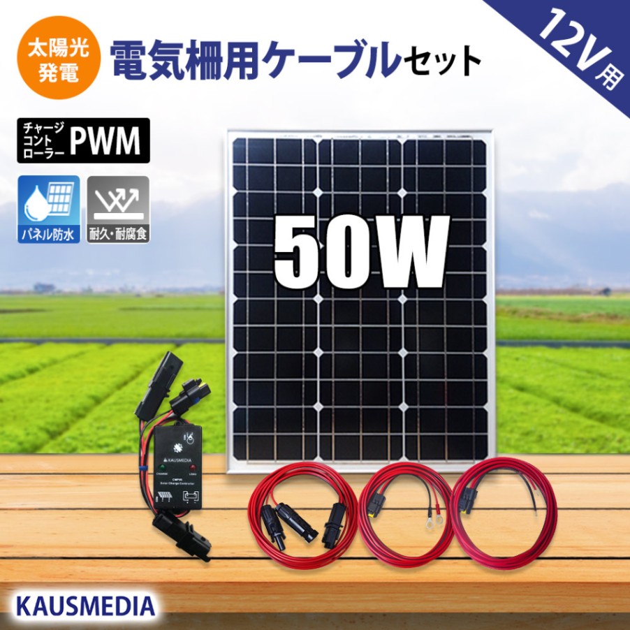 50W ソーラー充電 電気柵 外部出力用 ケーブルセット 防水コネクタ付 太陽光 水田 畑 鳥獣害対策 発電 蓄電